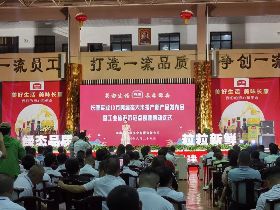 2023年8月28日,長康實業(yè)10萬噸綠態(tài)大米加工投產(chǎn)新產(chǎn)品發(fā)布會暨工業(yè)旅游示范點創(chuàng)建的啟動儀式在湘陰舉辦。湘陰縣各級領導、部門單位、戰(zhàn)略合作單位及來自全國優(yōu)秀的200多名客商代表們齊聚一堂,共同見證長康新品——綠態(tài)大米首次發(fā)布。